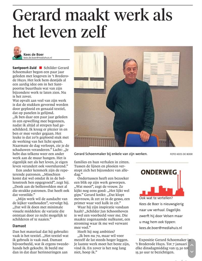 Van 1 december tot 7 januari exposeert Gerard Schoemaker in het Brederodehuys in Santpoort Zuid.